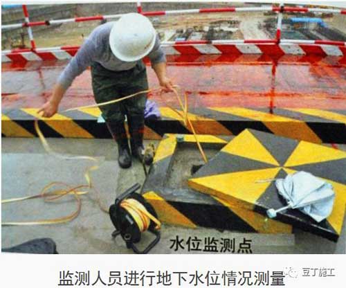 基坑开挖深度范围内有地下水,应采取有效的降排水措施,以确保正常施工。深基坑降水施工应分层降水,随时观测支护外观测井水位,防止邻近建筑物等变形。